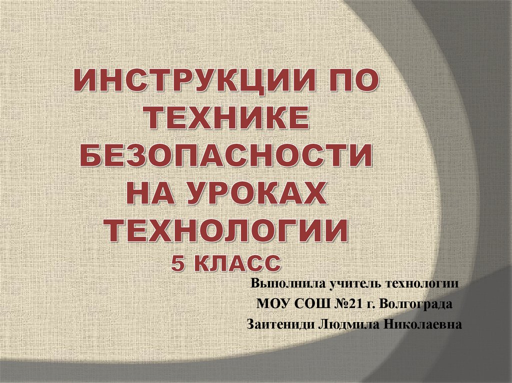 1. ИНСТРУКЦИИ ПО ТЕХНИКЕ БЕЗОПАСНОСТИ НА УРОКАХ ТЕХНОЛОГИИ 5 класс