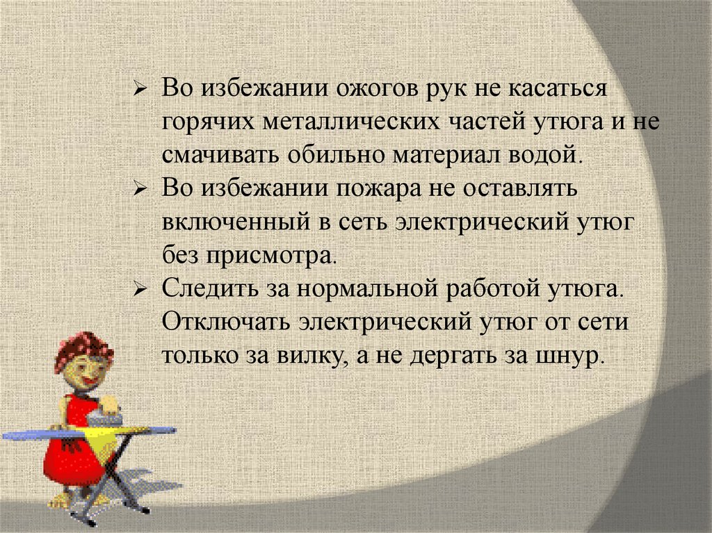 Включать электрический утюг в сеть ивыключать сухими руками.