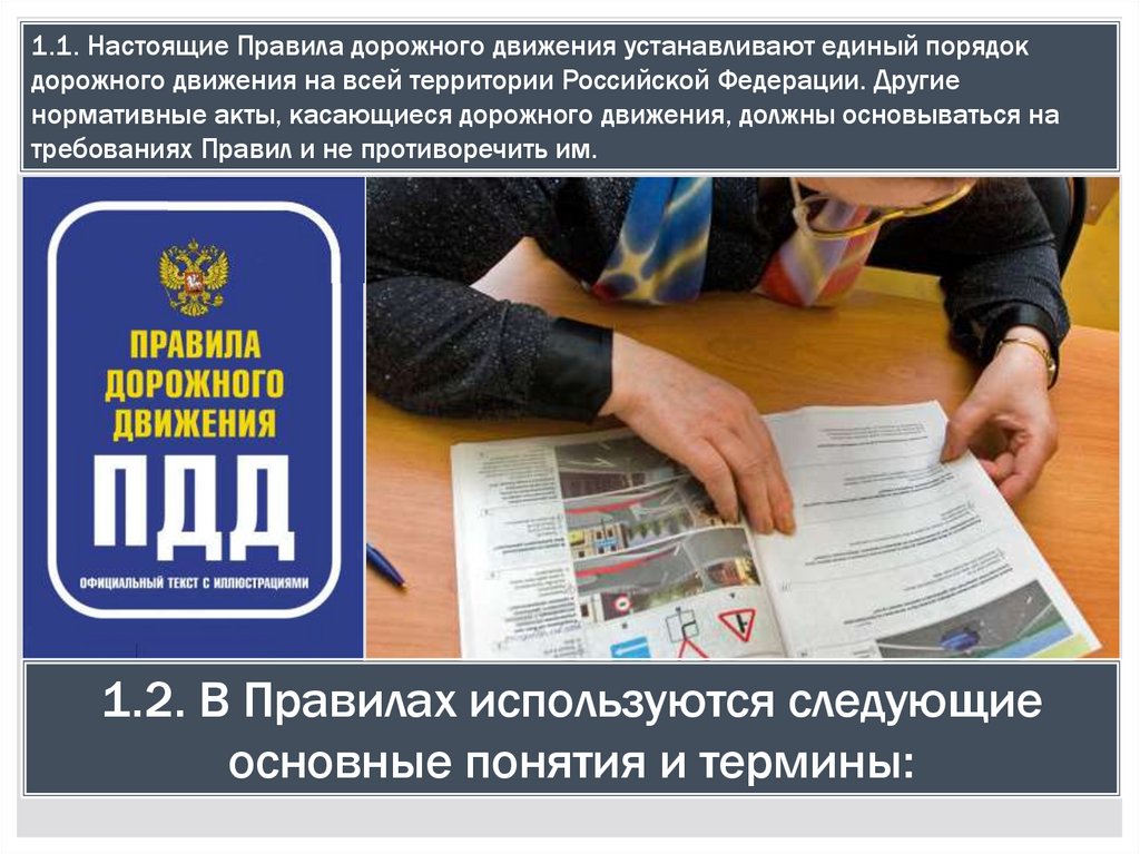 1.1. Настоящие Правила дорожного движения устанавливают единый порядокдорожного движения на всей территории Российской Федерации. Другие