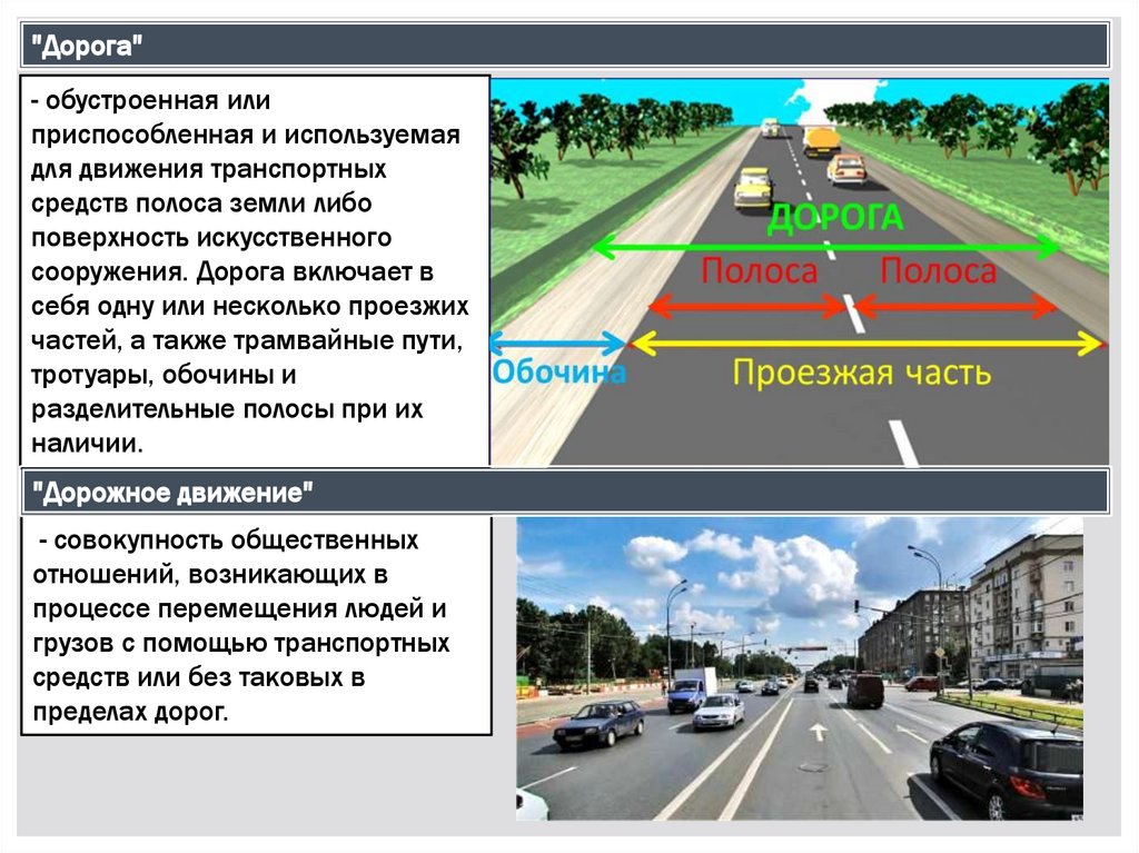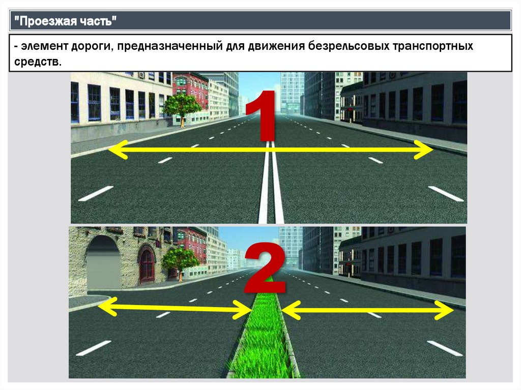 "Проезжая часть"- элемент дороги, предназначенный для движения безрельсовых транспортных