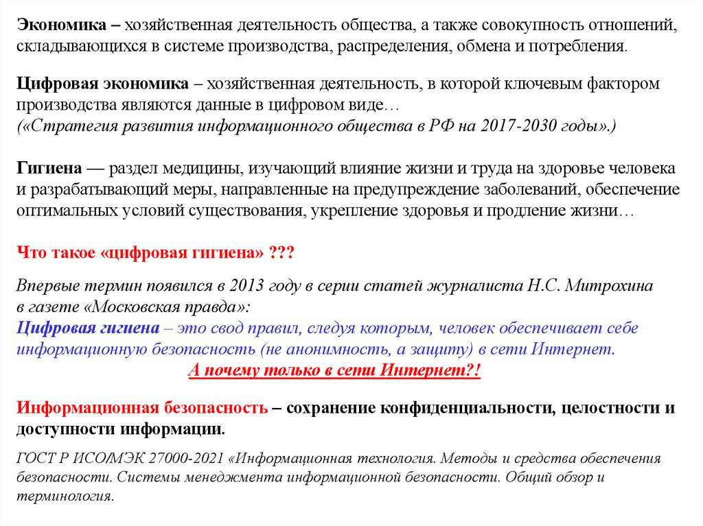 цифровая трансформация, цифровая экономика, цифровая гигиена…