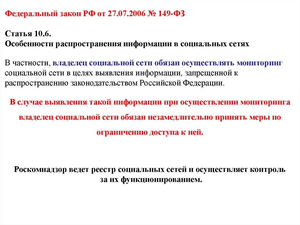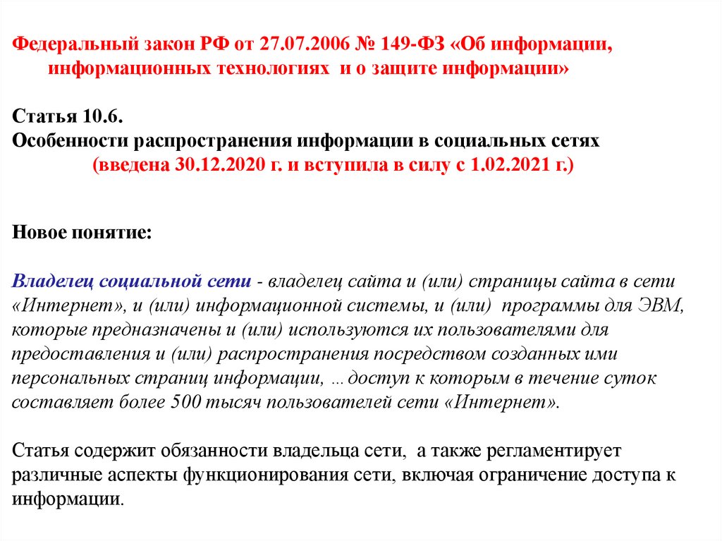 и о защите информации». (№ 149-ФЗ)