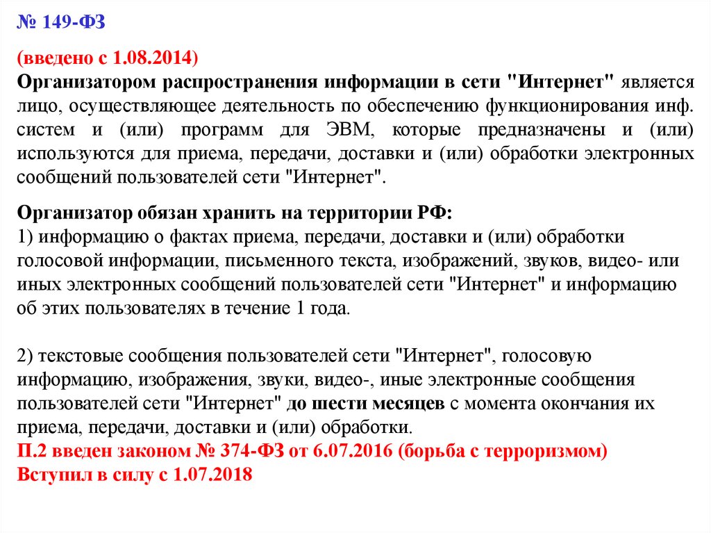 В закон 149-ФЗ:
