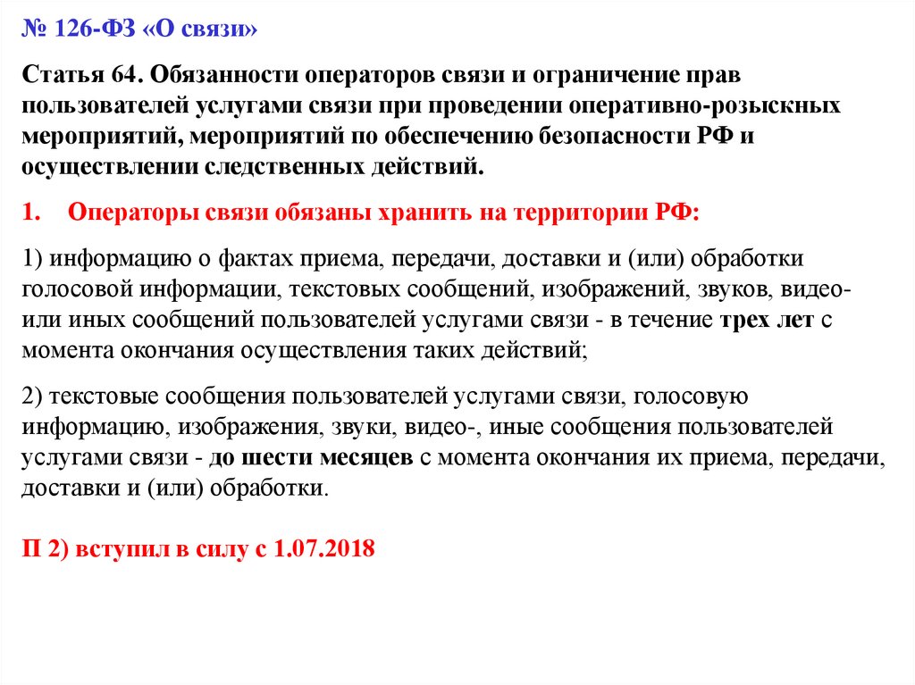 Операторы связи обязаны обеспечивать установку в своей сети связи технических