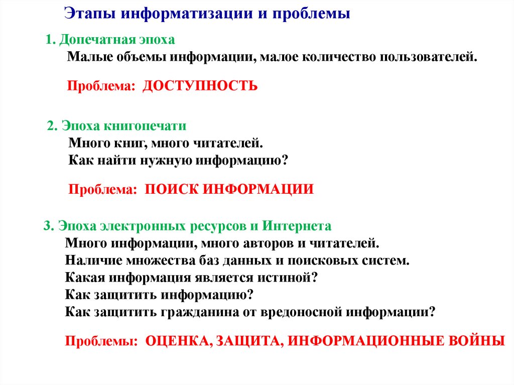 Этапы информатизации и проблемы1. Допечатная эпоха