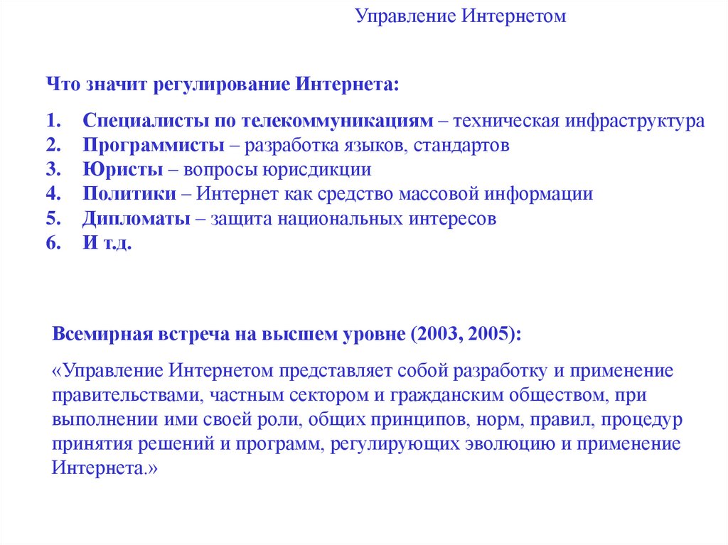 решения и участвовать в механизмах управления Интернетом);