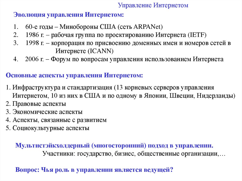 Управление ИнтернетомПринципы управления Интернетом