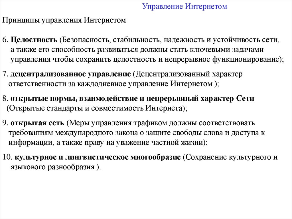 десять принципов управления Интернетом, которые должны соблюдаться