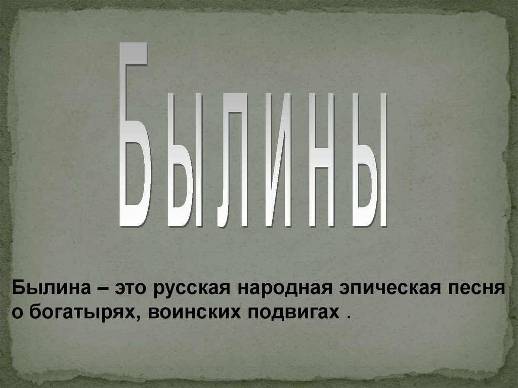 Былина – это русская народная эпическая песняо богатырях, воинских подвигах .