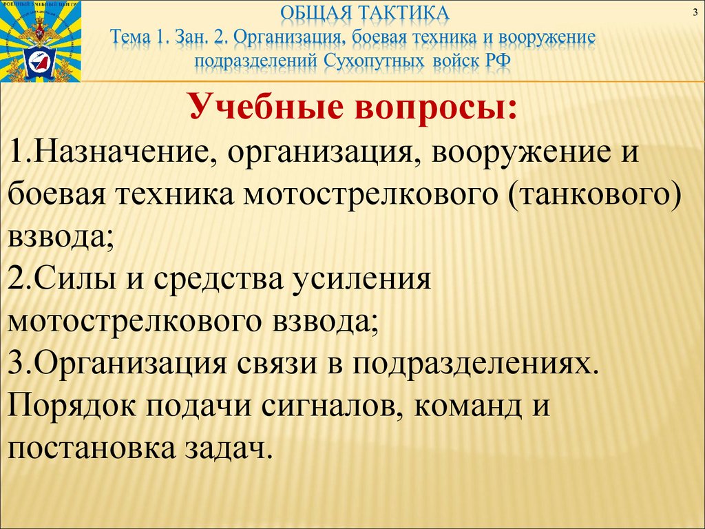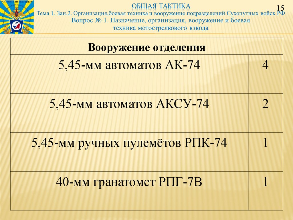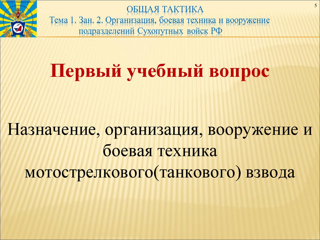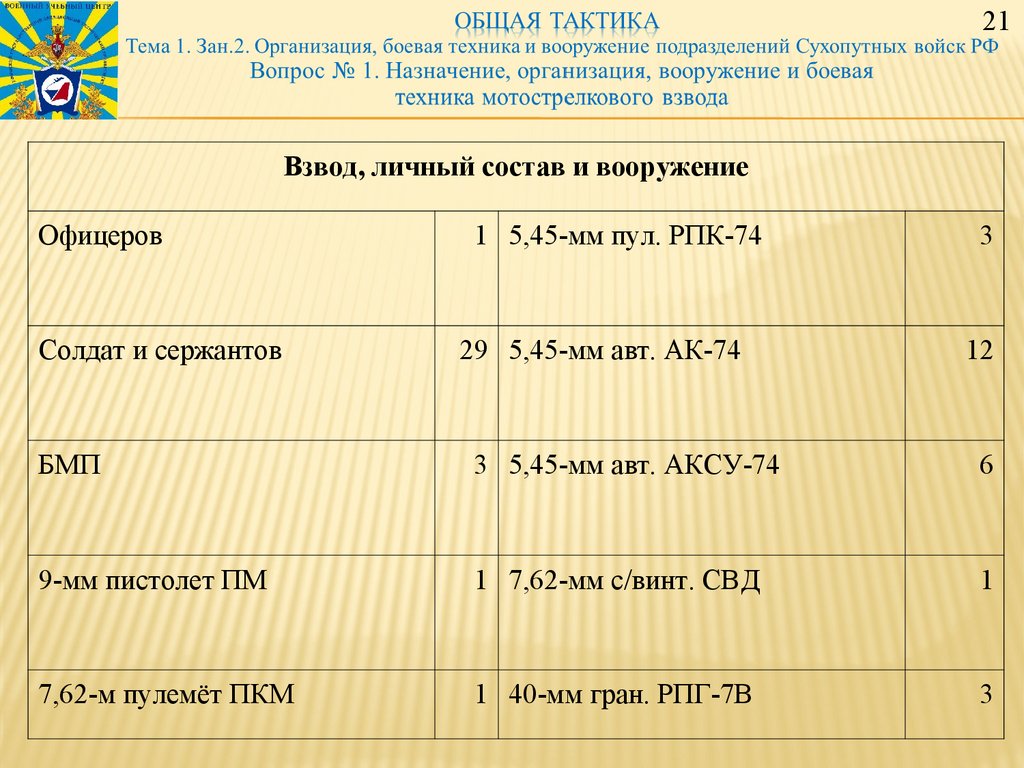 Тема 1. Зан. 2. Организация, боевая техника и вооружение