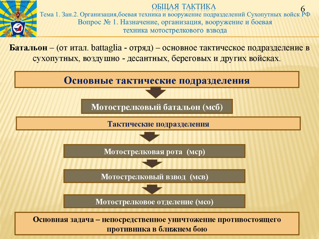 6Батальон – (от итал. battaglia - отряд) – основное тактическое подразделение в