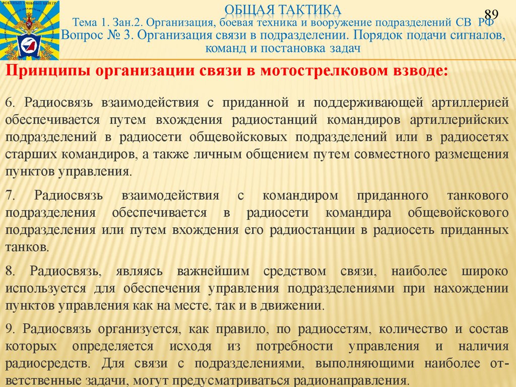 7. Радиосвязь взаимодействия с командиром приданного танкового