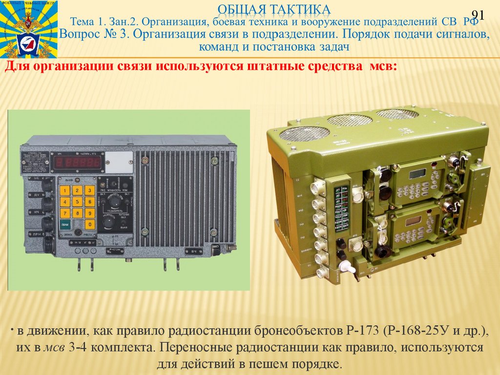 • в движении, как правило радиостанции бронеобъектов Р-173 (Р-168-25У и др.),
