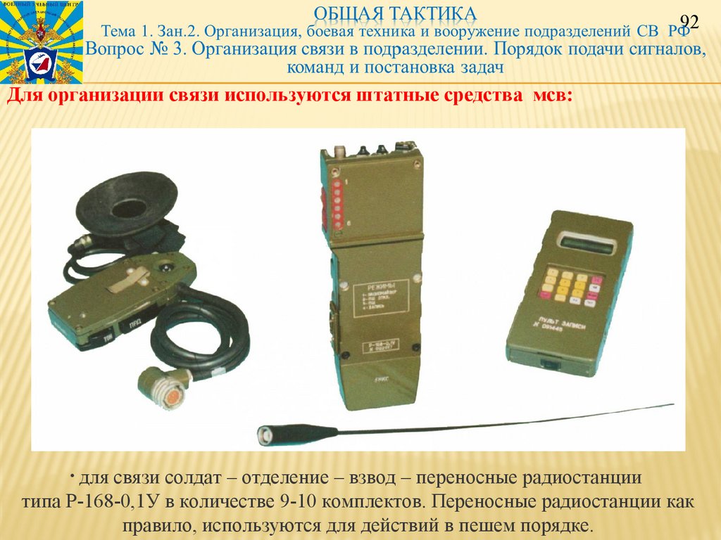 типа Р-168-0,1У в количестве 9-10 комплектов. Переносные радиостанции как