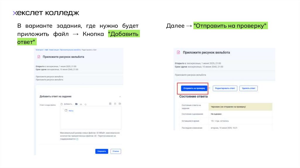 В варианте задания, где нужно будетприложить файл → Кнопка "Добавить