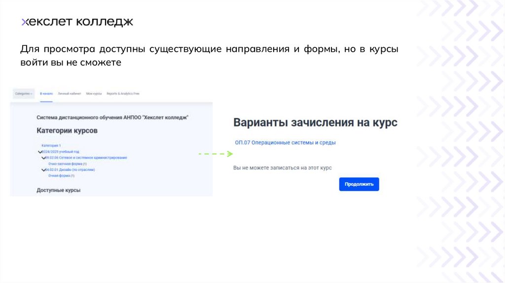 Для просмотра доступны существующие направления и формы, но в курсывойти вы не сможете