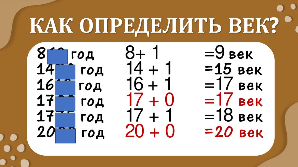 КАК ОПРЕДЕЛИТЬ ВЕК?8+ 1