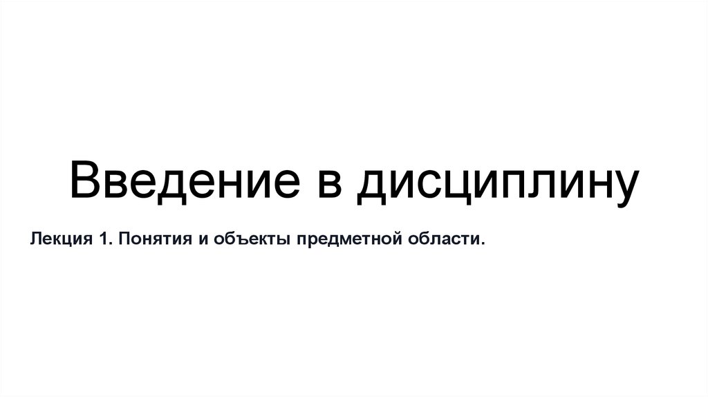 Введение в дисциплинуЛекция 1. Понятия и объекты предметной области.