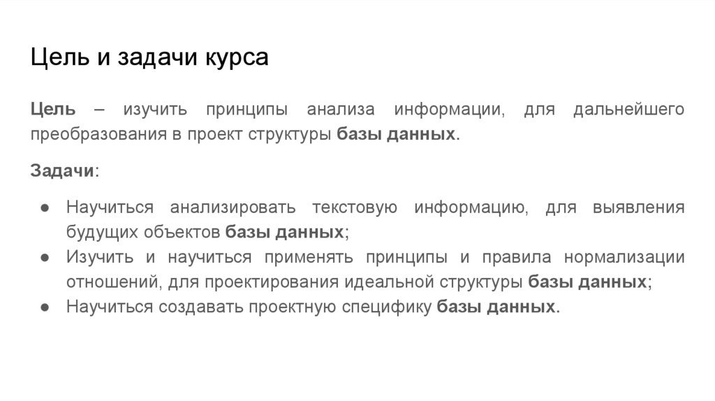 Цель и задачи курсаЦель – изучить принципы анализа информации,