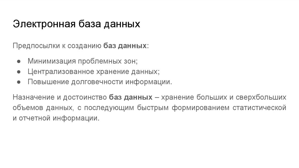 Назначение и достоинство баз данных – хранение больших и сверхбольших