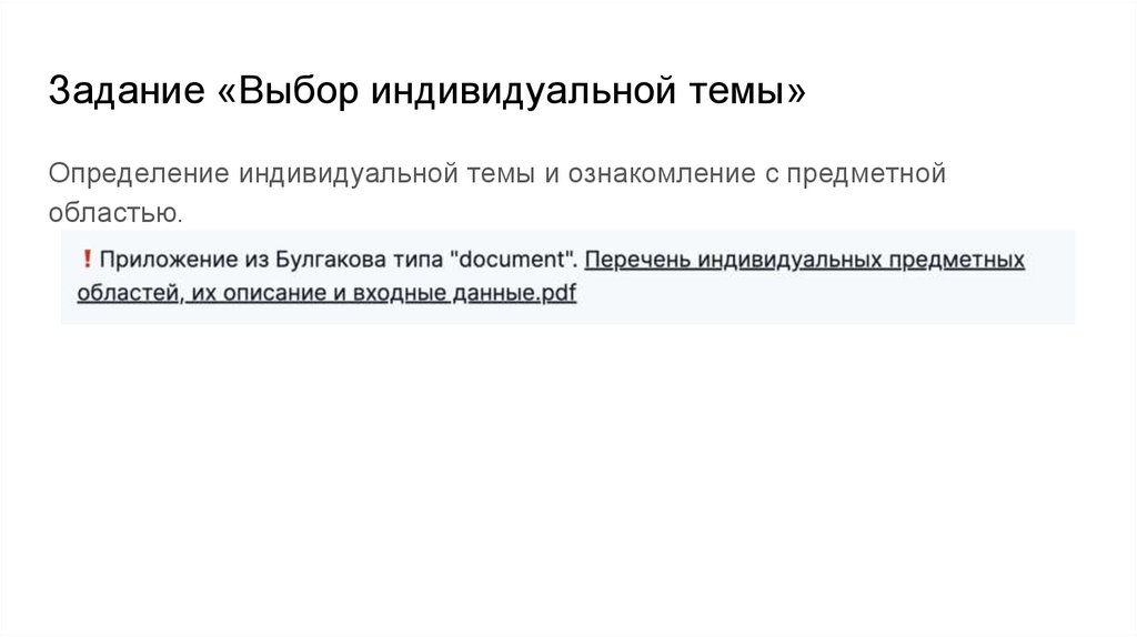 Задание «Выбор индивидуальной темы»Определение индивидуальной темы и ознакомление с предметной
