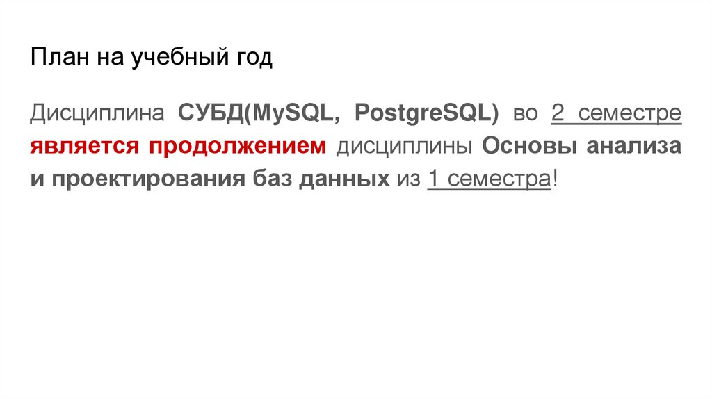 План на учебный годДисциплина СУБД(MySQL, PostgreSQL) во 2 семестре