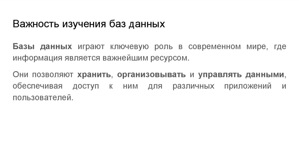 Важность изучения баз данныхБазы данных играют ключевую роль в современном мире, где