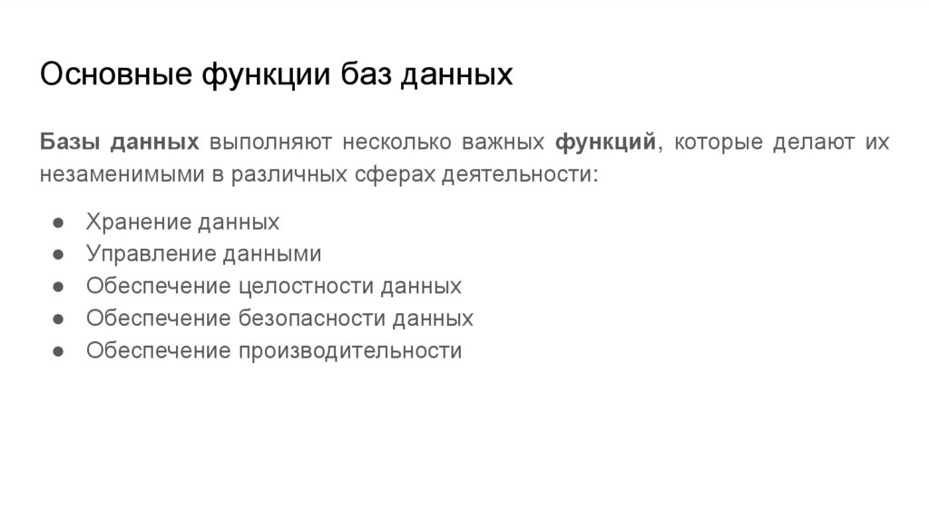 Основные функции баз данныхБазы данных выполняют несколько важных функций, которые делают их