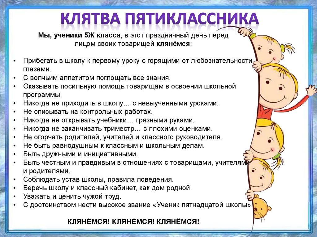 Мы, ученики 5Ж класса, в этот праздничный день передлицом своих товарищей клянёмся: