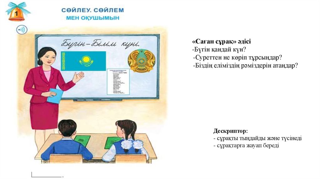 Дескриптор:- сұрақты тыңдайды және түсінеді