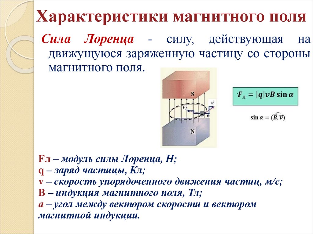 Характеристики магнитного поляСила Лоренца - силу, действующая на