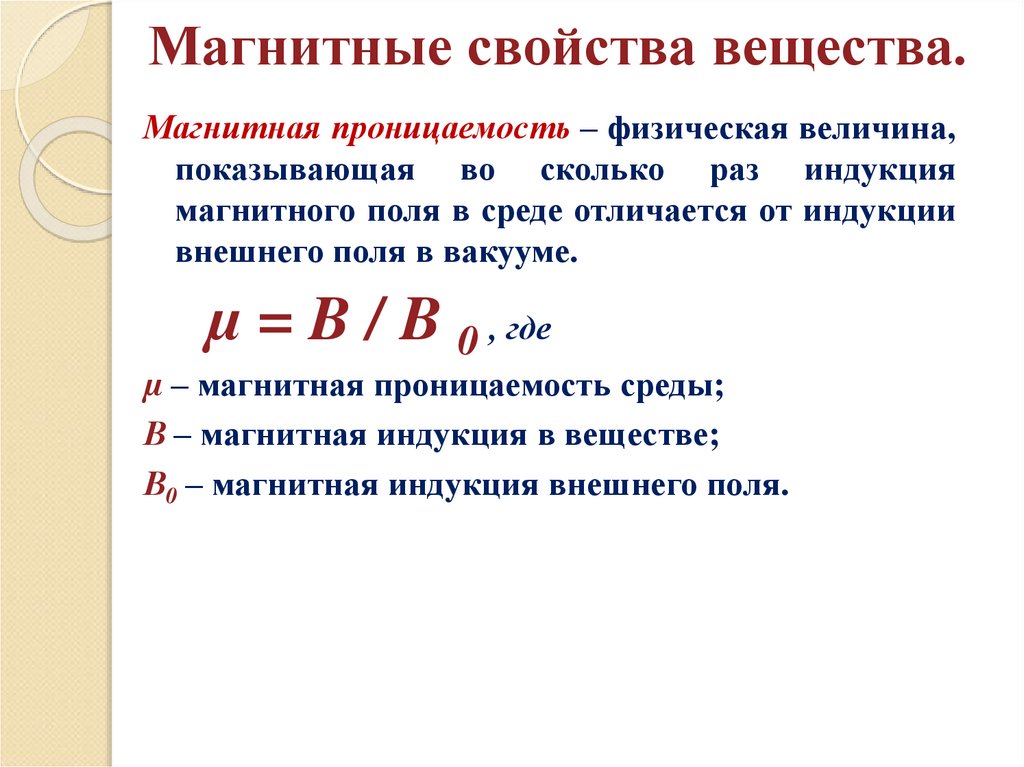 Магнитные свойства вещества.Магнитная проницаемость – физическая величина,