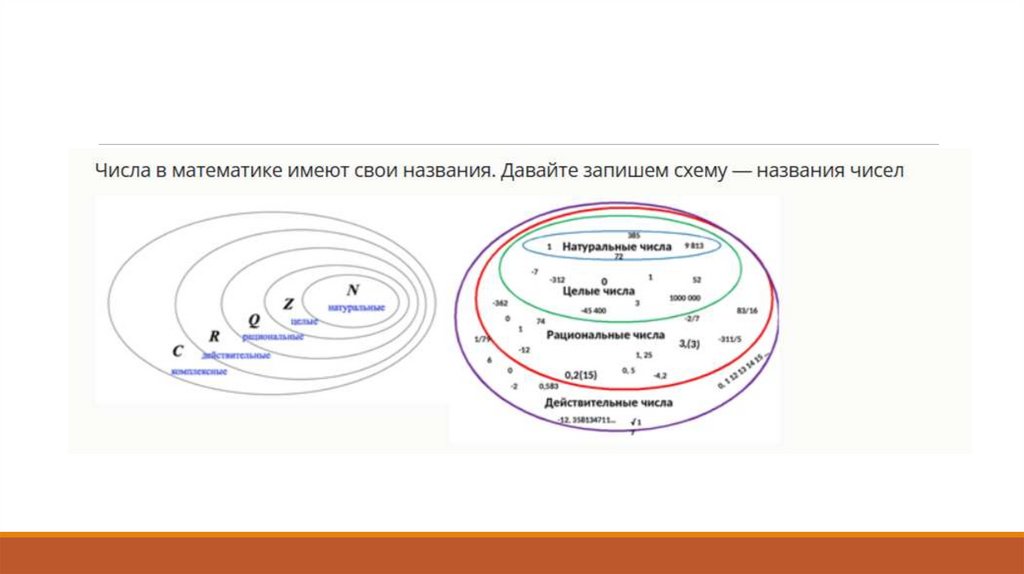 Множество натуральных, целых, рациональных и множествах действительных чисел