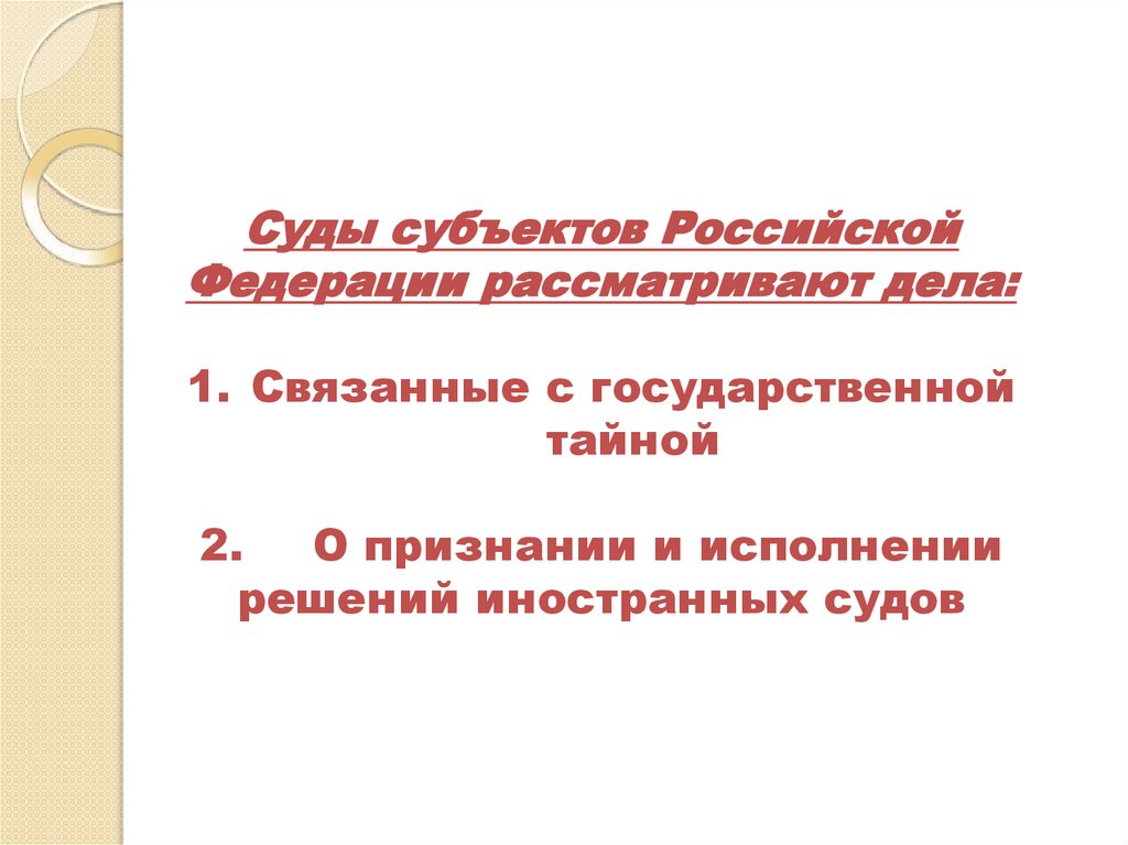 Суды субъектов РоссийскойФедерации рассматривают дела: