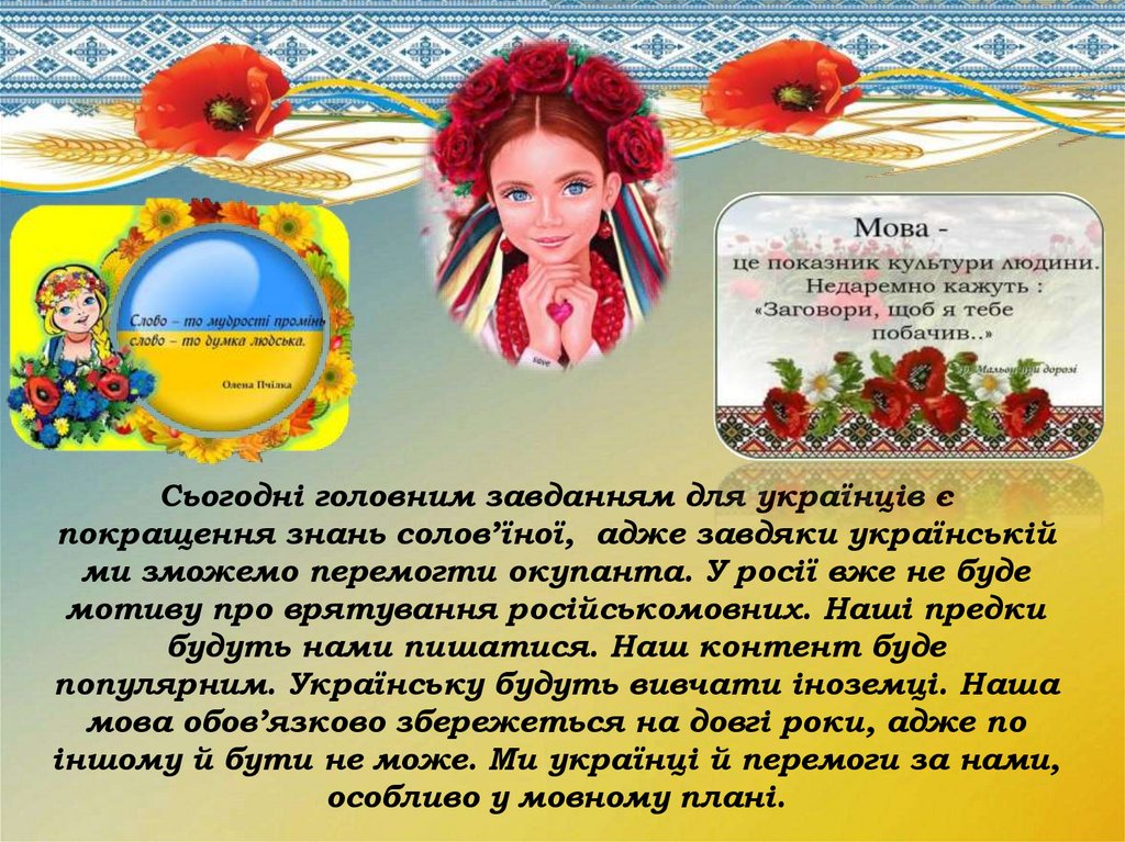Сьогодні головним завданням для українців єпокращення знань солов’їної, адже завдяки українській