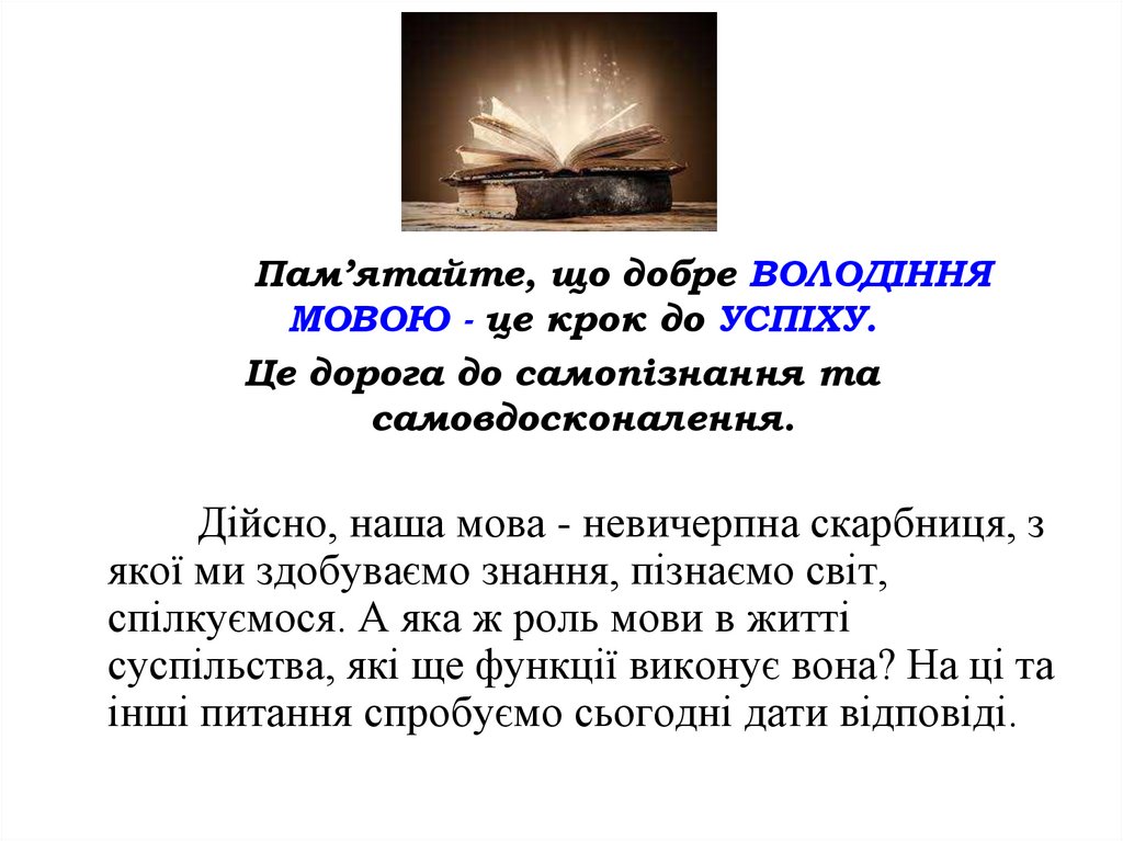 Пам’ятайте, що добре ВОЛОДІННЯМОВОЮ - це крок до УСПІХУ.