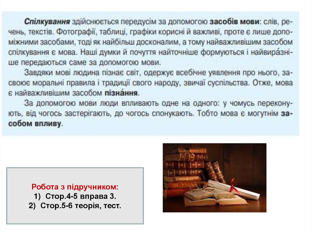 Робота з підручником:1) Стор.4-5 вправа 3.
