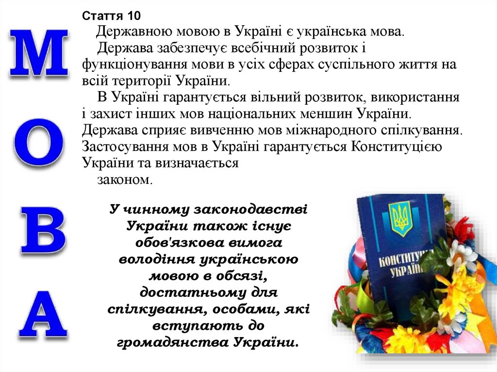 Стаття 10Державною мовою в Україні є українська мова.