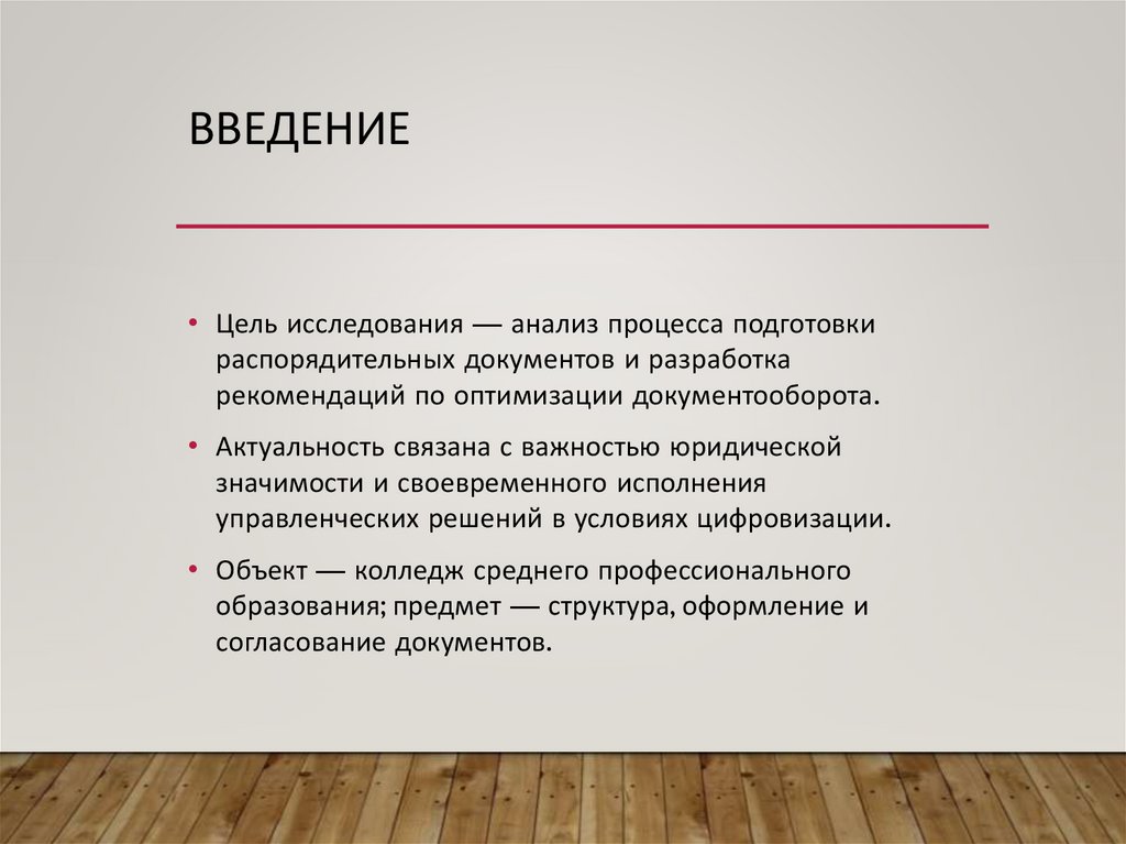ВВЕДЕНИЕ• Цель исследования — анализ процесса подготовки