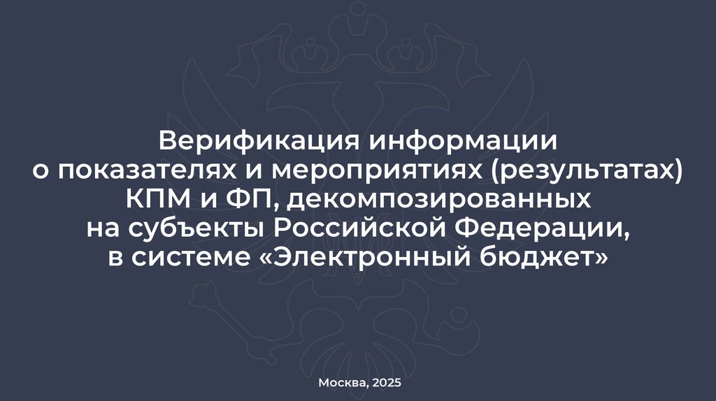 Верификация информации о показателях и мероприятиях (результатах) КПМ и ФП, декомпозированных на субъекты Российской Федерации,