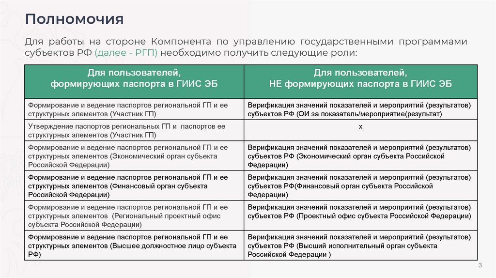 субъектов РФ (далее - РГП) необходимо получить следующие роли: