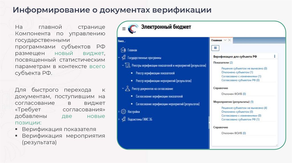 Реестры верификацииДля процесса верификации созданы новые пункты меню: