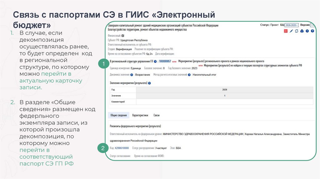 Связь с паспортами СЭ в ГИИС «Электронныйбюджет»