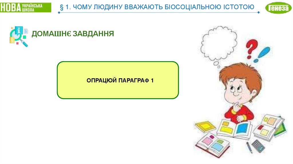 § 1. ЧОМУ ЛЮДИНУ ВВАЖАЮТЬ БІОСОЦІАЛЬНОЮ ІСТОТОЮДОМАШНЄ ЗАВДАННЯ
