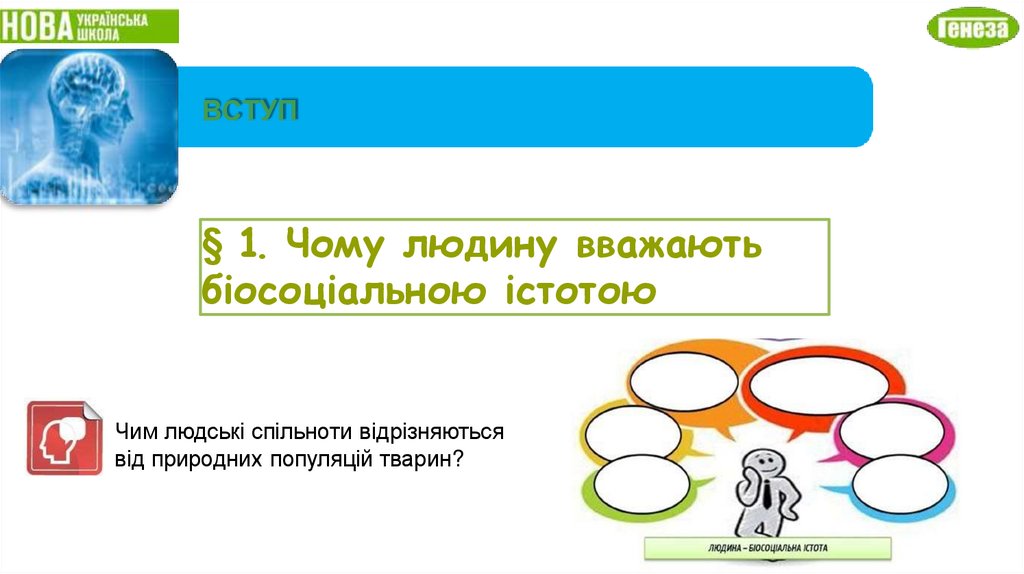 11. § 1. ЧОМУ ЛЮДИНУ ВВАЖАЮТЬ БІОСОЦІАЛЬНОЮ ІСТОТОЮ