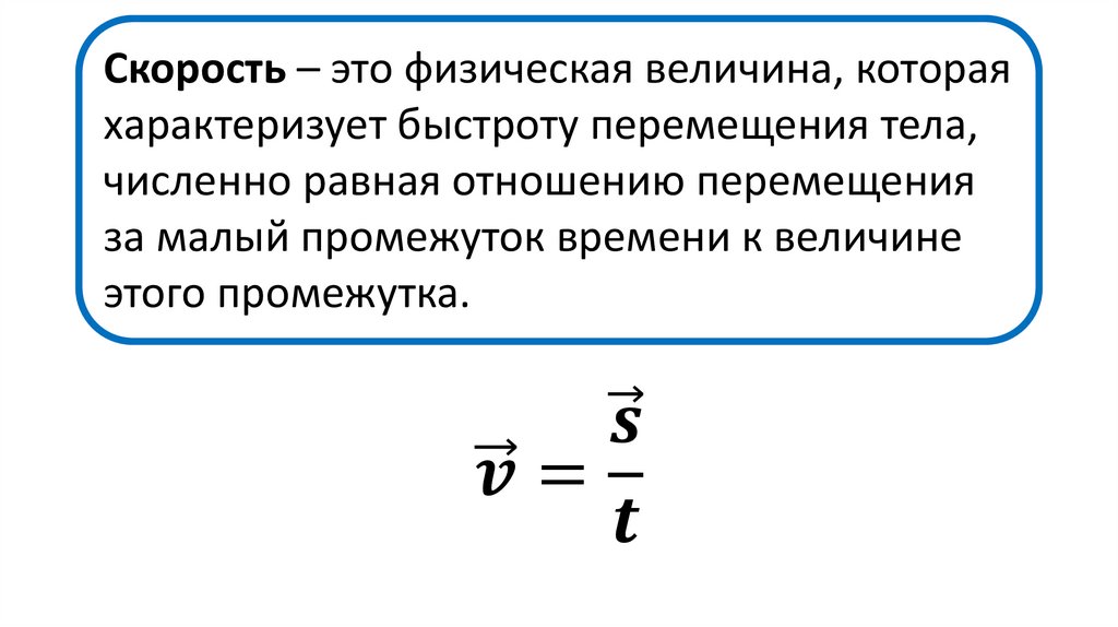 Скорость – это физическая величина, котораяхарактеризует быстроту перемещения тела,