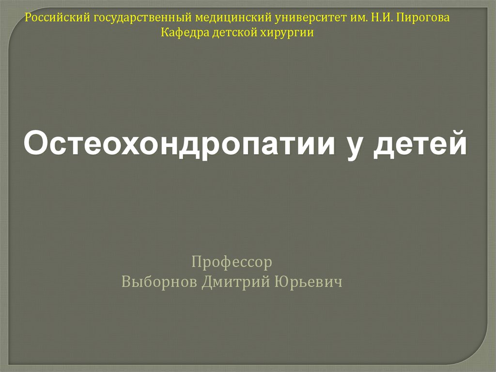 Российский государственный медицинский университет им. Н.И. ПироговаКафедра детской хирургии