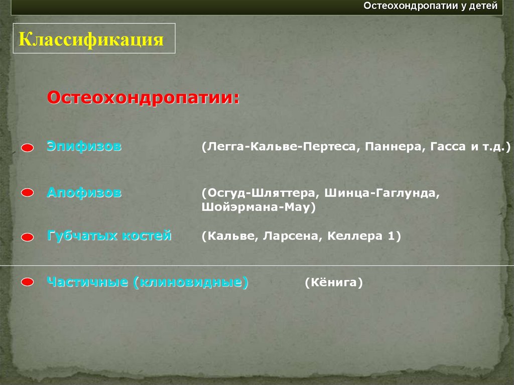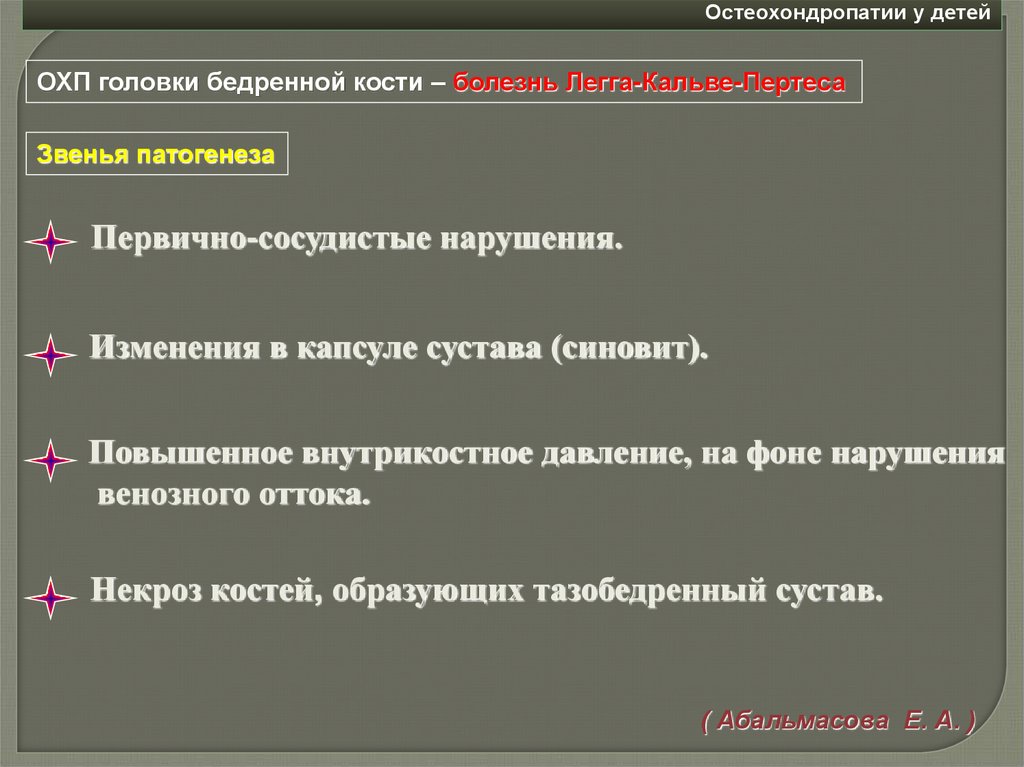 (Легга-Кальве-Пертеса, Паннера, Гасса и т.д.)