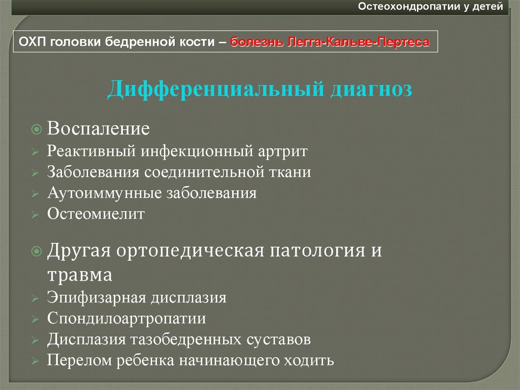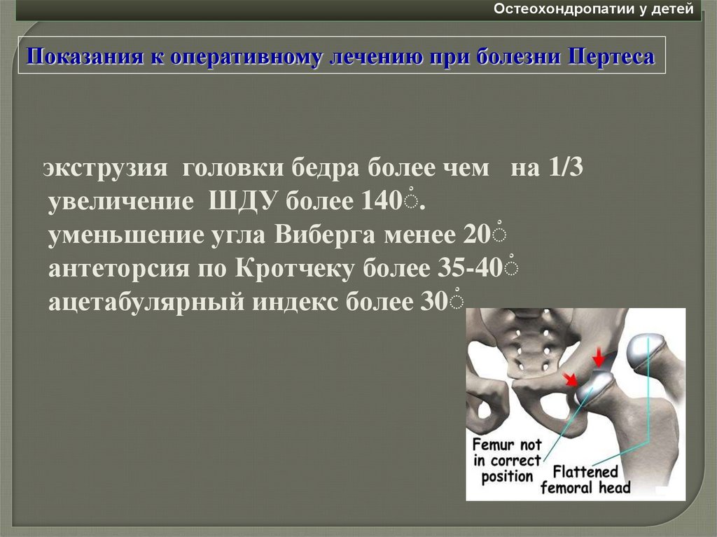 Остеохондропатии у детейПоказания к оперативному лечению при болезни Пертеса