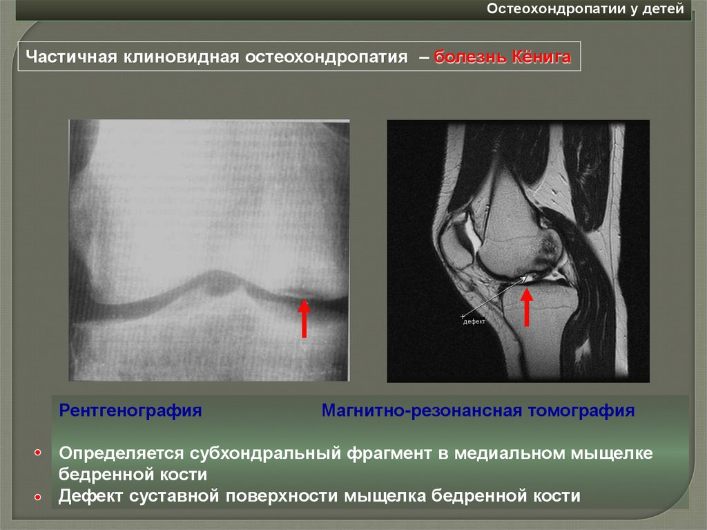 Определяется субхондральный фрагмент в медиальном мыщелке